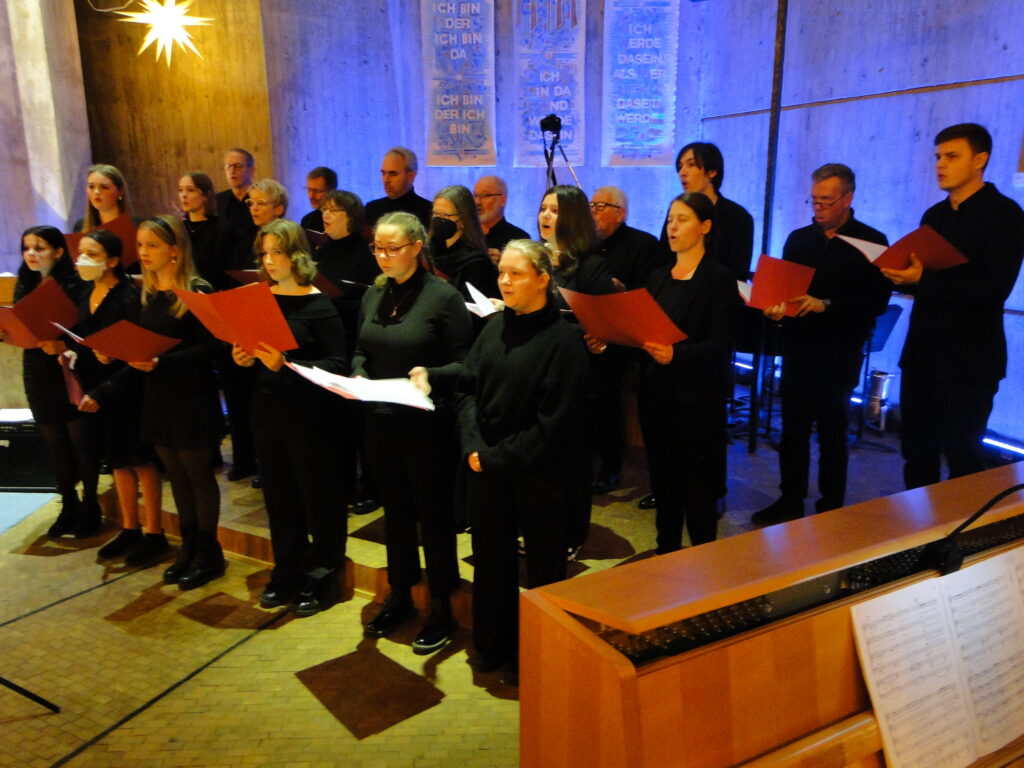 Der Chor I, begleitet durch Herrn Schmidt am Klavier, sang „Snowman“ und „All I want for Christmas“. Eine „Pastorale“ wurde von Vi Truong auf der Querflöte vorgetragen. Im Anschluss überzeugten der Chor II (Foto), Charlotte Kulow und Finja Thiel (Solo) und Annette Schmidt-Höngen am Klavier besonders mit dem „Cantate Domino“ von Karl Jenkins.